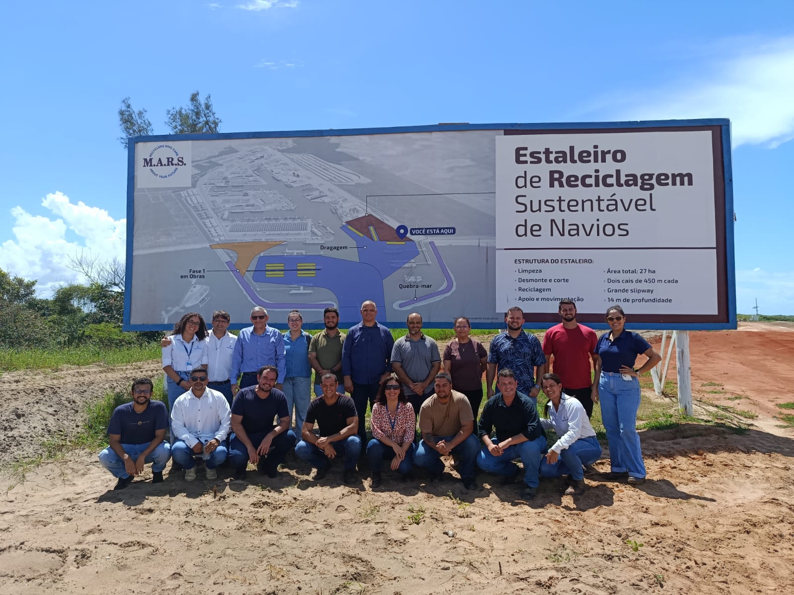 Formado por estudantes e profissionais da área portuária e logística, o grupo acompanhou uma apresentação sobre o estágio atual das obras, o cronograma de implantação e as próximas etapas do empreendimento. Durante a visita, os participantes também conheceram as estruturas em desenvolvimento e puderam vivenciar a escala técnica e operacional de um projeto de grande porte.