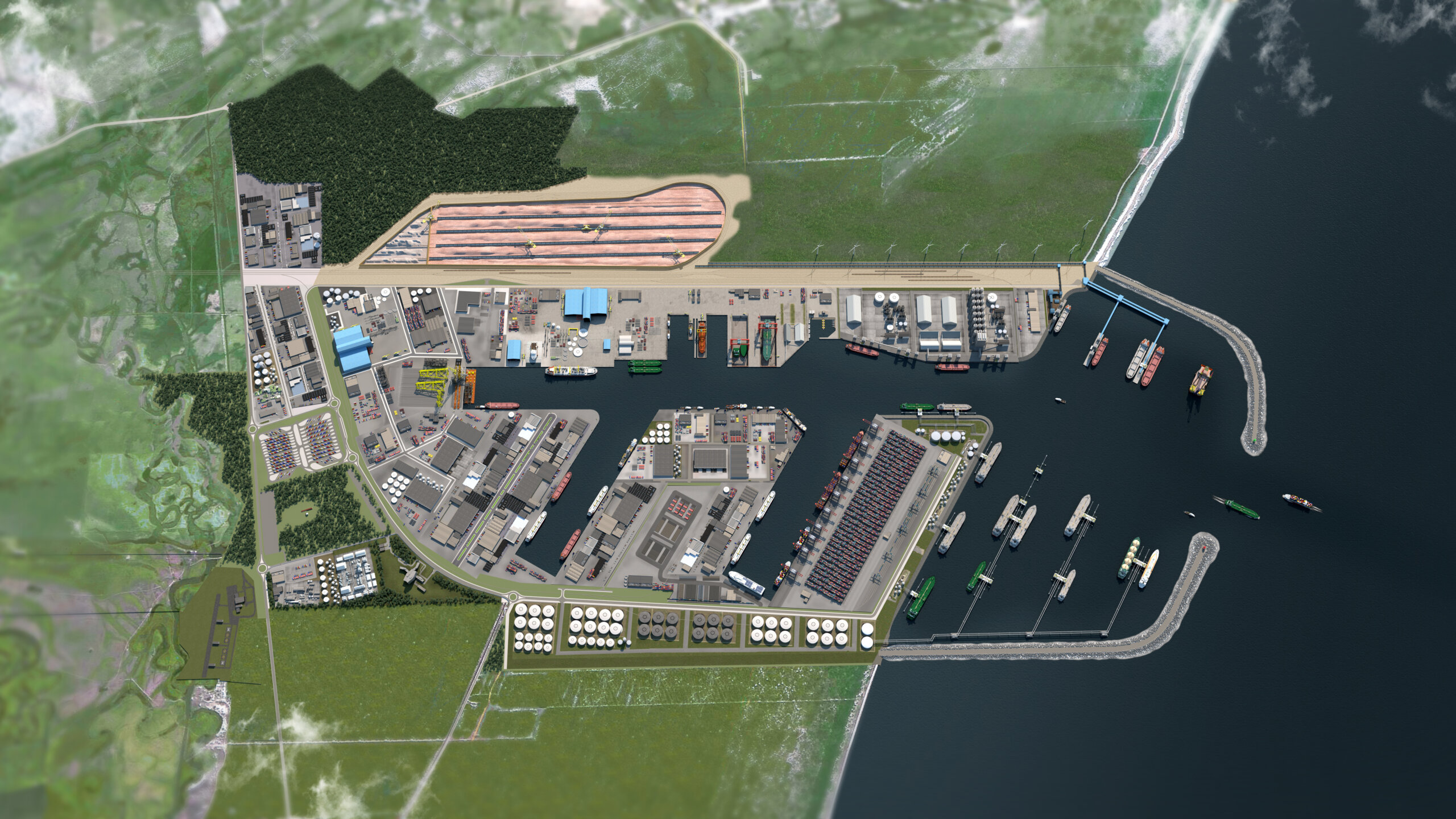 The masterplan covers an area of 2,000 hectares, with water depths of up to 25 meters, and 54 berths intended for operations that go beyond the oil and derivatives sector. The project was designed to accommodate multipurpose terminals and industries, including the handling and storage of liquid bulk (such as bunker and fuels), solid bulk, grains, fertilizers, minerals, containers, general cargo, natural gas, offshore support, and shipyards.
