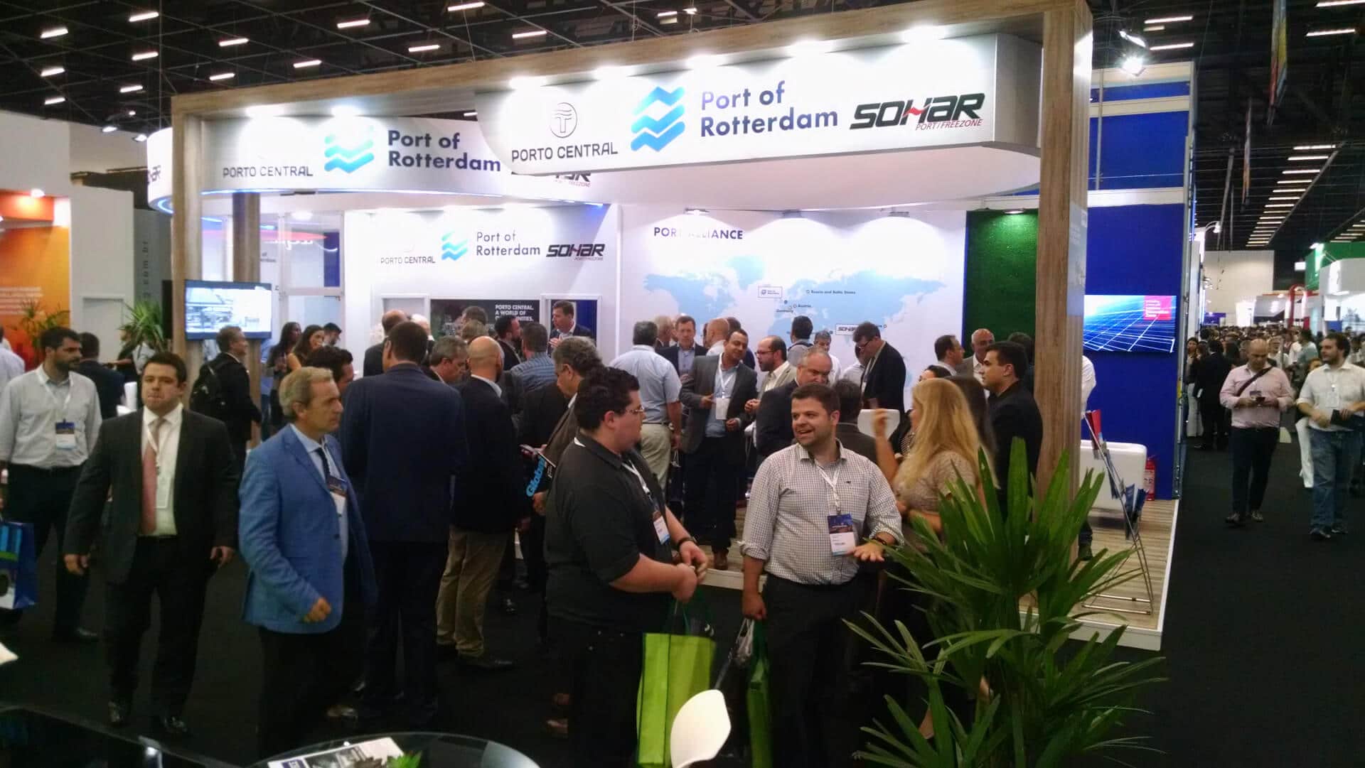 O Porto Central esteve presente como expositor, compartilhando um elegante estande com os seus parceiros internacionais: o Porto de Roterdã da Holanda e o Porto e Freezone de Sohar de Omã, Oriente Médio. Além da equipe executiva e comercial dos três portos, também estiverem presentes apoiando o estande as empresas de dragagem responsáveis pela construção do Porto Central, a Van Oord Dredging and Marine Contractors e a Boskalis N.V, bem como outros fornecedores que estão ajudando a desenvolver este porto único no Brasil.