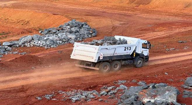 O Porto Central segue avançando na implantação da sua infraestrutura, com a operação contínua da pedreira e novas etapas de carregamento, transporte e depósito das rochas no canteiro de obras do porto.